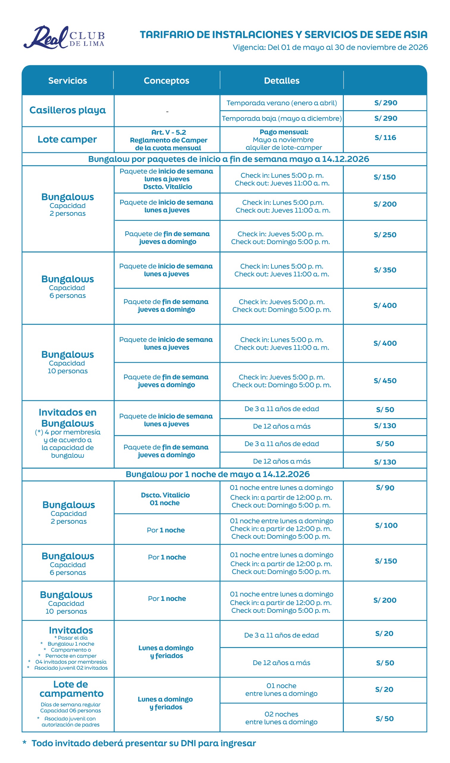 Reserva de Bungalows – Mayo 2026